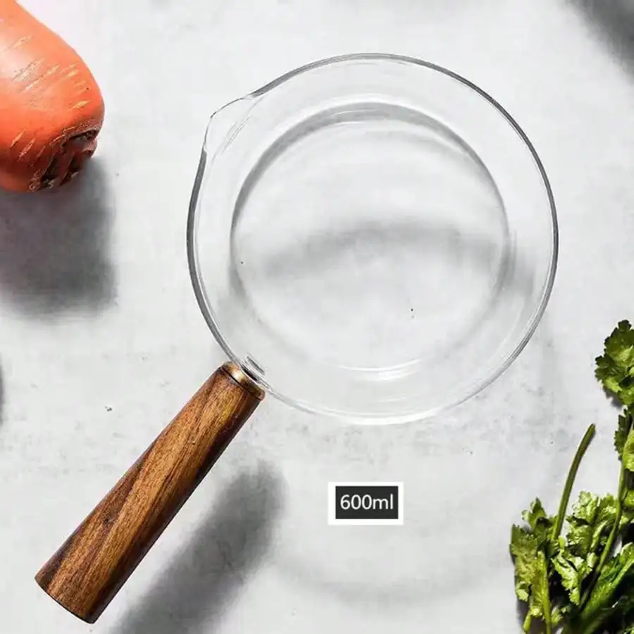 1 шт., стеклянный горшок для молока с деревянной ручкой, горшок для супа, салатница, прозрачная стеклянная деревянная ручка, маленькая миска для лапши быстрого приготовления