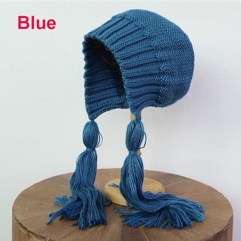 1 шт. стильная женская шапка с длинными косами зимняя толстая вязаная шапка с ушами вязаная крючком шапка YSL синий