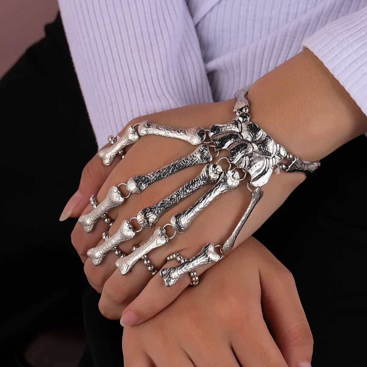 1 шт. стильный модный металлический браслет в стиле панк с черепом Регулируемый Женский Готический Призрак Скелет на палец браслет ручная ц...