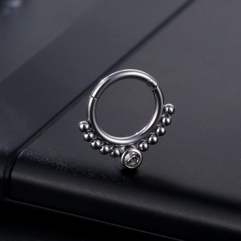 1 шт., титановое стальное кольцо для носа, круглый шарик, перегородка, кликер, кубический цирконий, ушной козелок, хрящ, модный пирсинг
