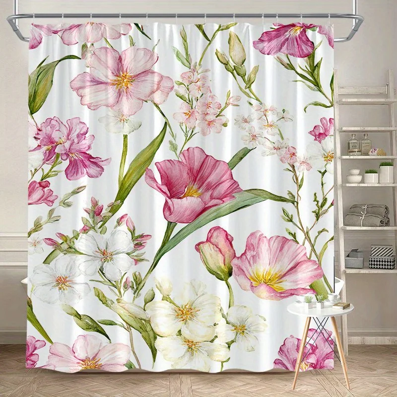 1 шт. цветочная акварельная занавеска для душа, полиэфирная ткань, можно стирать в машине, с крючками, подходит для украшения ванной комнаты