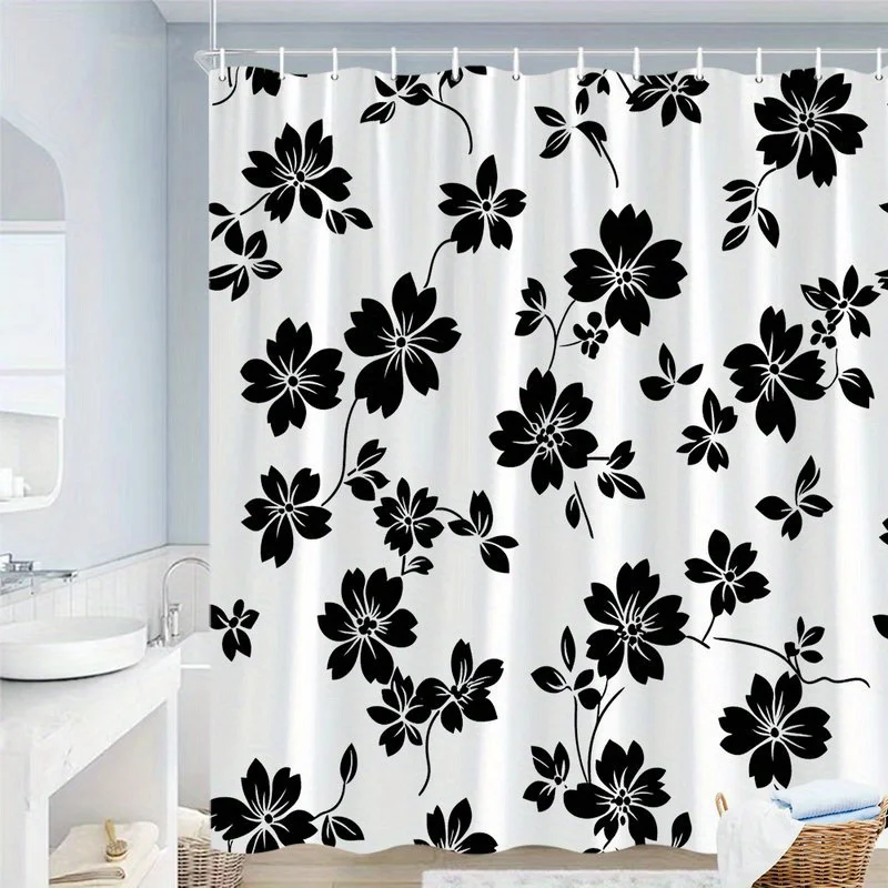 1 шт. черная занавеска для душа с цветочным силуэтом, полиэфирная ткань, можно стирать в машине, подходит для украшения ванной комнаты