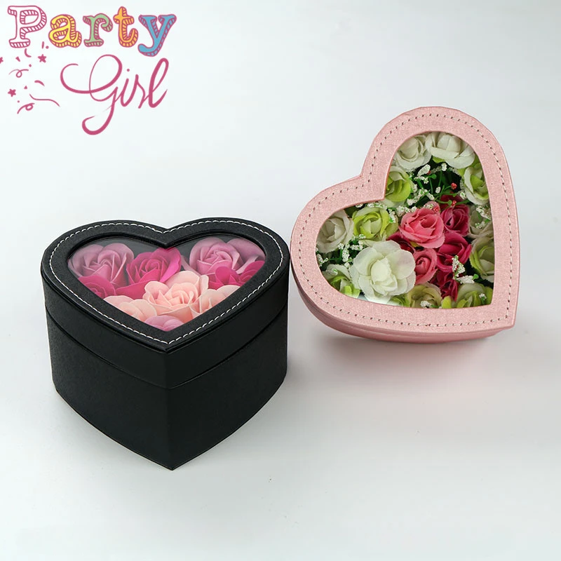 1 шт. черная кожаная коробка в форме сердца с цветами из пвх прозрачная крышка розовая подарочная коробка в форме сердца розы коробки коробка для хранения губной помады