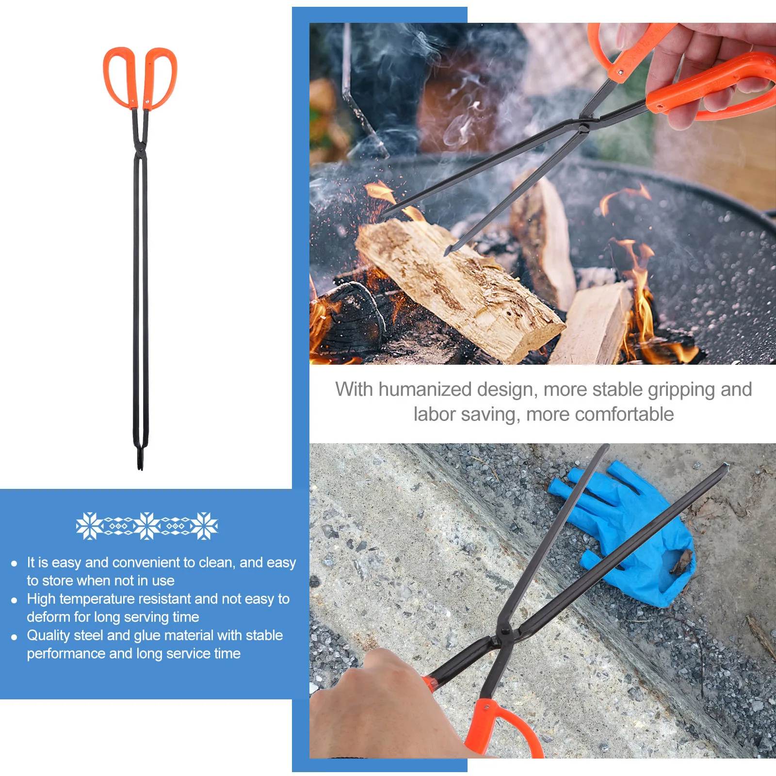 1 шт., щипцы для огня, длинная ручка, сверхмощный утюг для барбекю, костра, дровяная печь, уличные зажимы для брикета, зажим для мусора