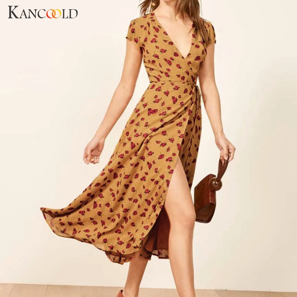 Женское ТРАПЕЦИЕВИДНОЕ ПЛАТЬЕ С Высокой Талией, V-образным вырезом, рукавами и принтом, летнее платье до пола на бретелях, 2022