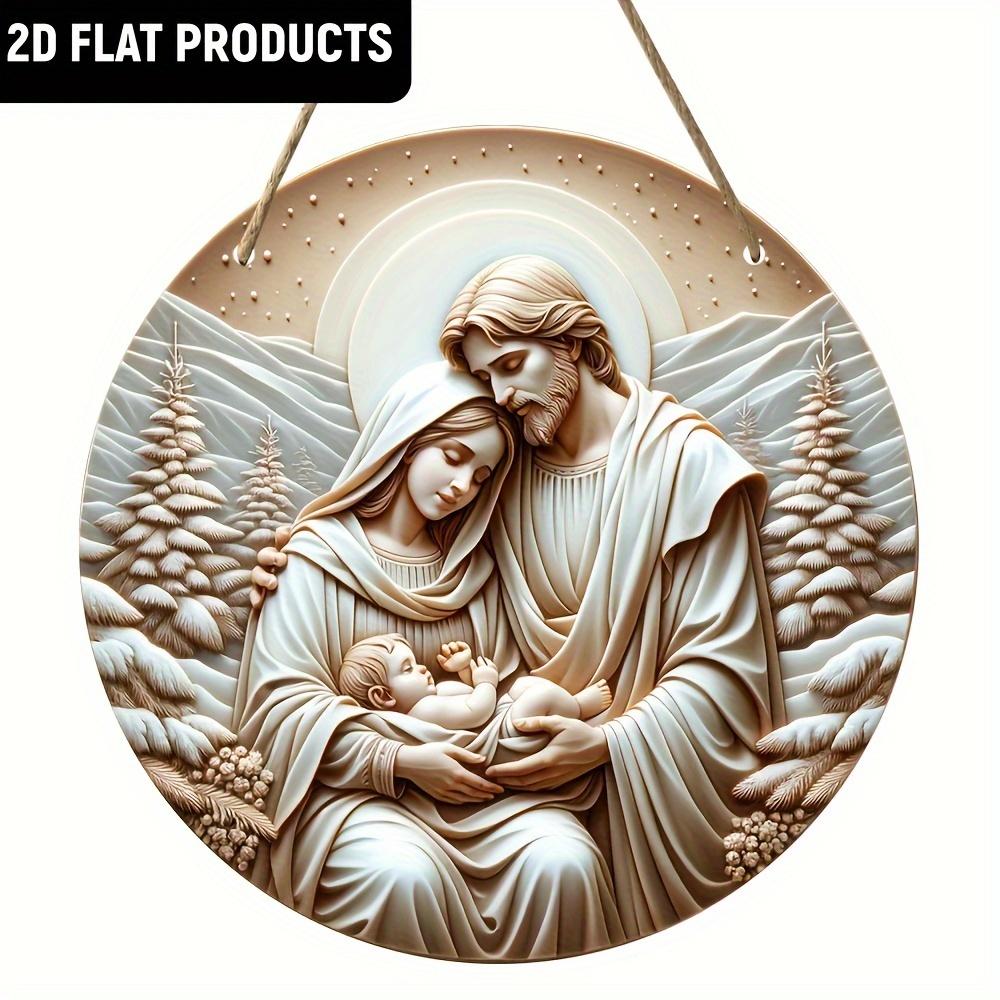 1 шт. 2d плоская классическая рождественская сцена деревянная табличка - 20 см круглая односторонняя настенная подвесная декорация, изготовленная из дерева, многоцелевая, идеально подходит для дома, 20cm*20cm