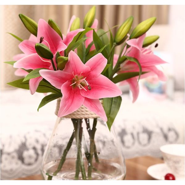 1 шт. 3 головы реальные сенсорные пвх искусственный шелковая лилия цветок свадебные садовые украшения дома фермы декор фестиваль подарок a65