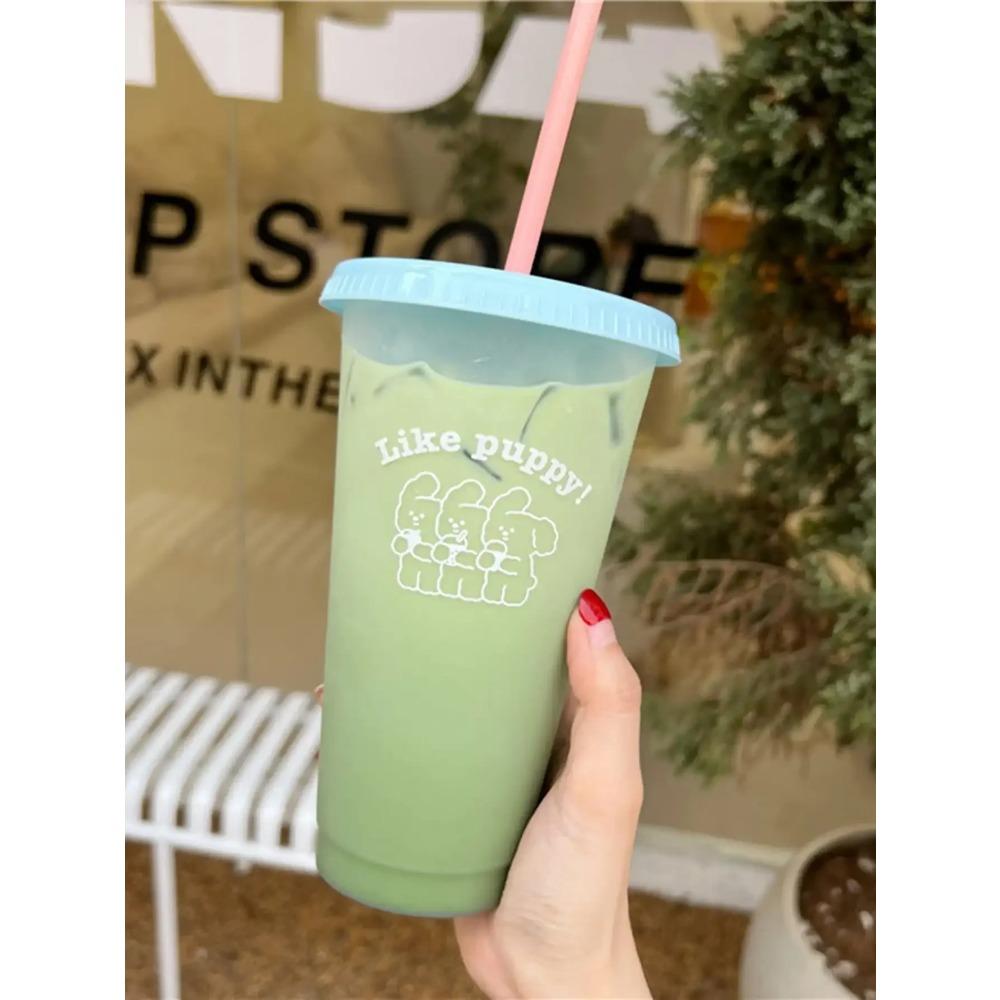 1 шт.-480 мл/700 мл Милая бутылка для воды Летняя кофейная чашка Пластиковая чашка с соломинкой Большая вместимость Удобная чашка Портативная многоразовая бутылка для питья 401-500ml