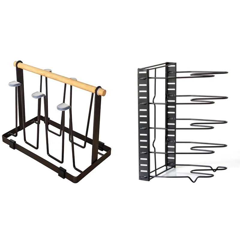 1 шт. 5-уровневый регулируемый стеллаж для хранения кастрюль и сковородок и 1 шт. металлический 6 чашек коробка для хранения чашек силиконовый...