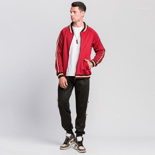 autumn zipper stand collar outerwear with pocket long sleeve sport mens clothes mens striped fleece jackets spring and, Black;brown