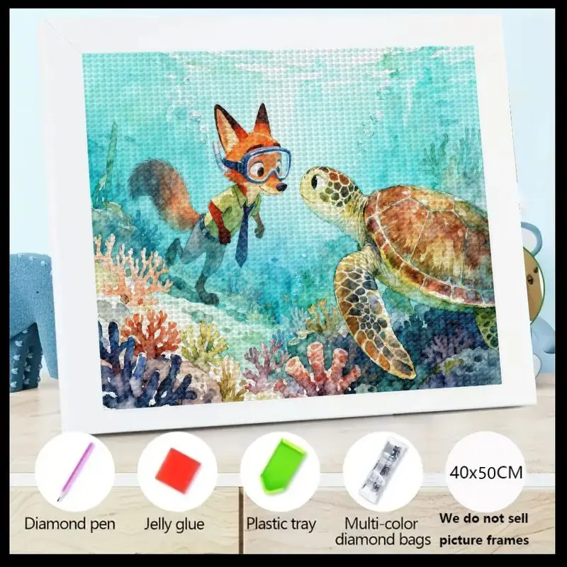 1 шт. 5D DIY Полный дрель Набор для алмазной живописи, милая мультяшная лиса и морская черепаха, подводная сцена океана, химерное морское животное A