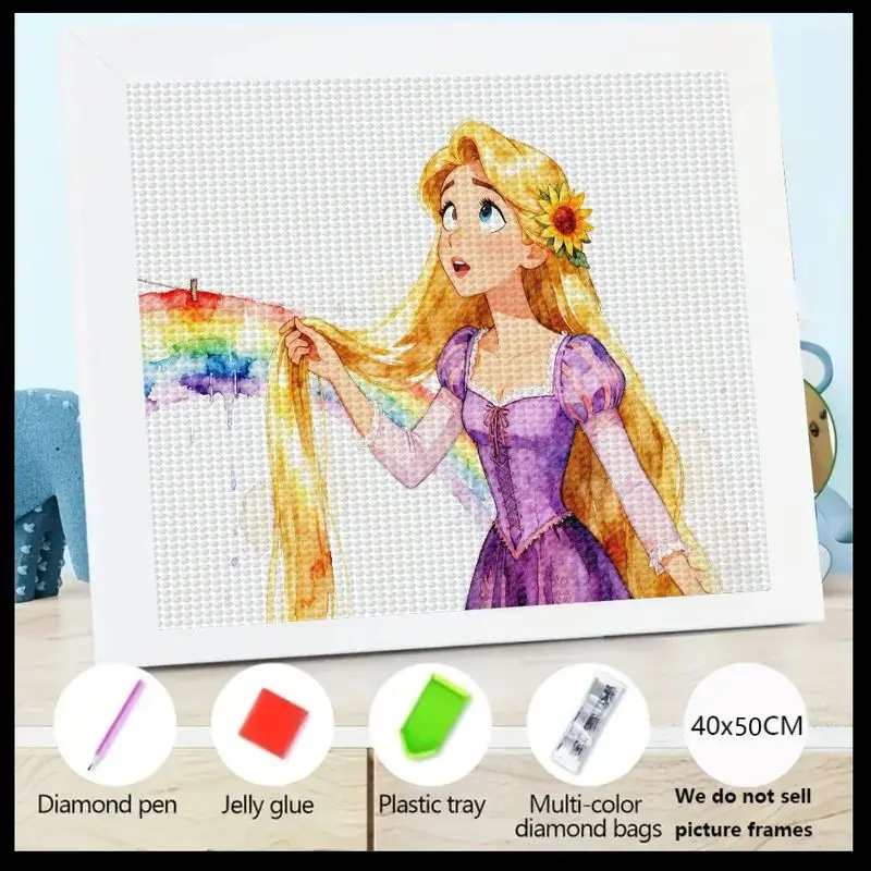 1 шт. 5D DIY полный дрель набор для алмазной живописи, мультяшная принцесса Диснея Рапунцель с длинными светлыми волосами, фиолетовое платье и радужная сцена