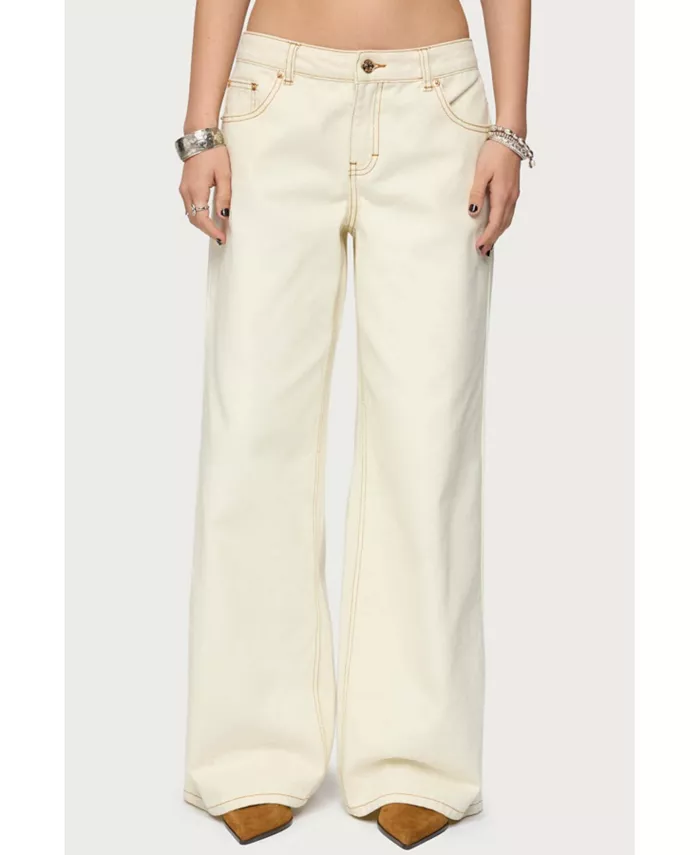 Женские джинсы с низкой талией и широкими штанинами и контрастной строчкой Edikted, коричневый/бежевый