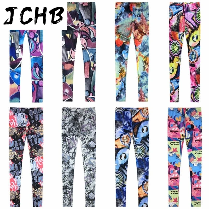 2021 Female Causal Flower Pants Tight Stretch Elastic Thin Graffiti Color Printing Leggings Spring Summer New Slim Fit Trousers