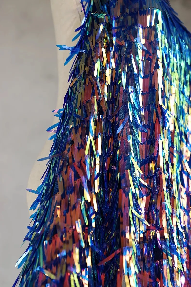 1-ярдовая высококачественная блестящая лазерная ткань с рыбьей чешуей, дизайнерская градиентная радужная модная кружевная свадебная сетчатая ткань для платья