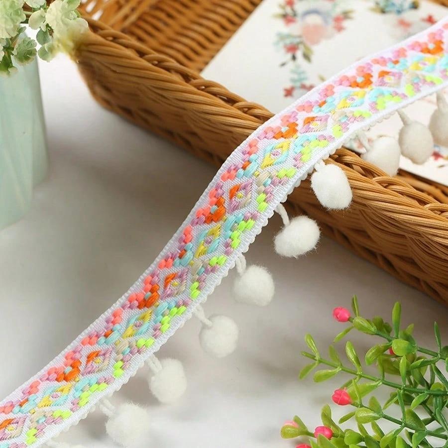 1 ярд Бахрома Кружевная отделка - Разноцветная кисточка с помпонами Лента для DIY поделок, шитья и украшения одежды | Мягкая отделка из меха БоБо с 1Yard белый