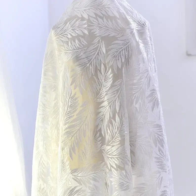 1 ярд, высокое качество, белая кружевная ткань с блестками и перьями, тюлевая ткань с вышивкой перьями для платья для девочек, платье-пачка, свадебное платье