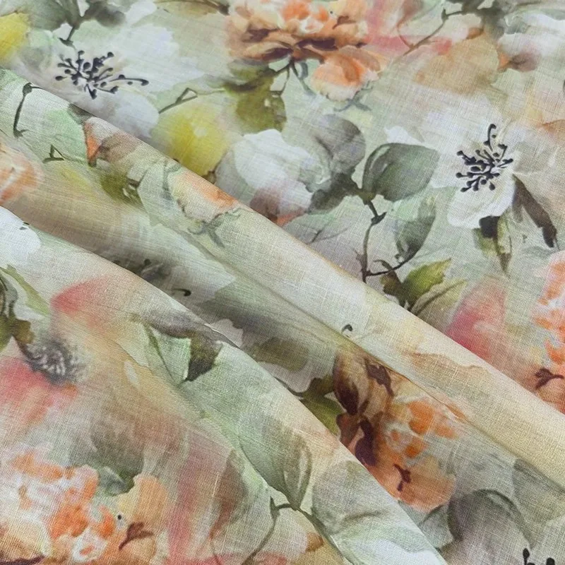 1 ярд, высококачественная ткань рами, ткань с принтом туманных цветов, ручная работа, сделай сам, для платьев, одежды, ткань для шитья