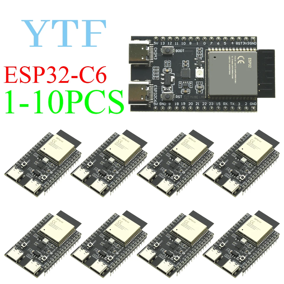 1-10PCS ESP32-C6 Development Board – Wi-Fi 6, BLE 5.3, IEEE 802.15.4, Dual USB-C, 4/8/16MB Flash, Arduino Nano Compatible