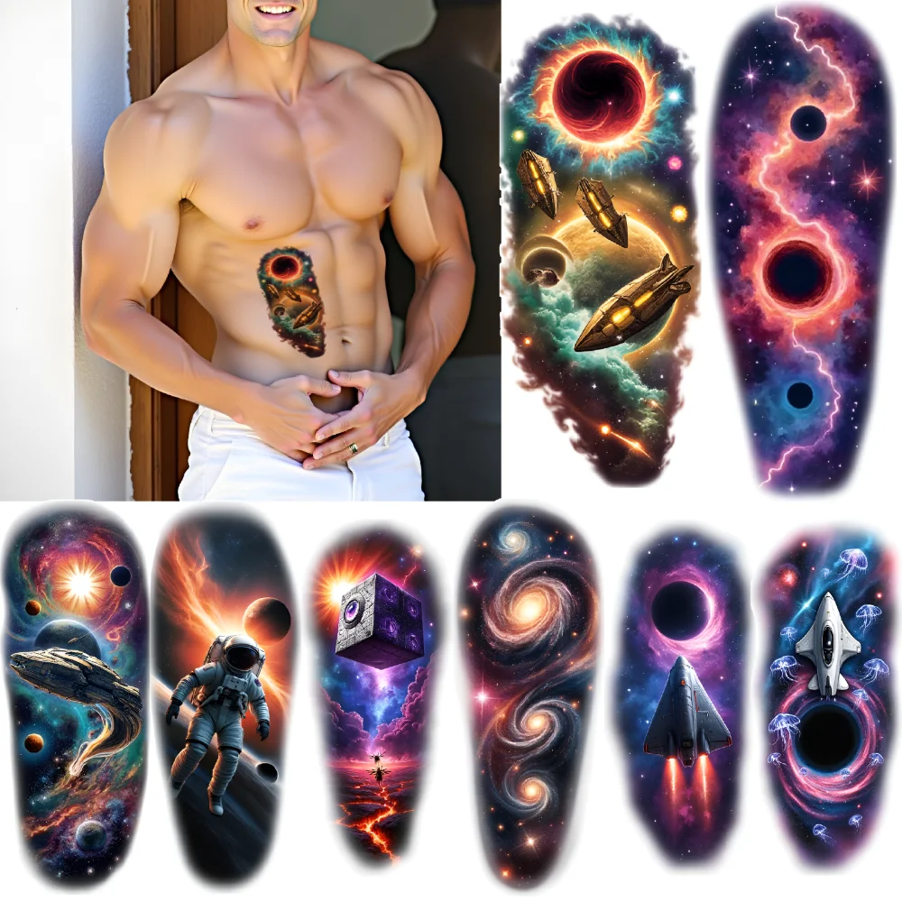 3pcs Temporary Tattoo Spaceship Realistic Temporary Tattoos Alien UFO Planetary Rings Waterproof Long-lasting Body Stickers For