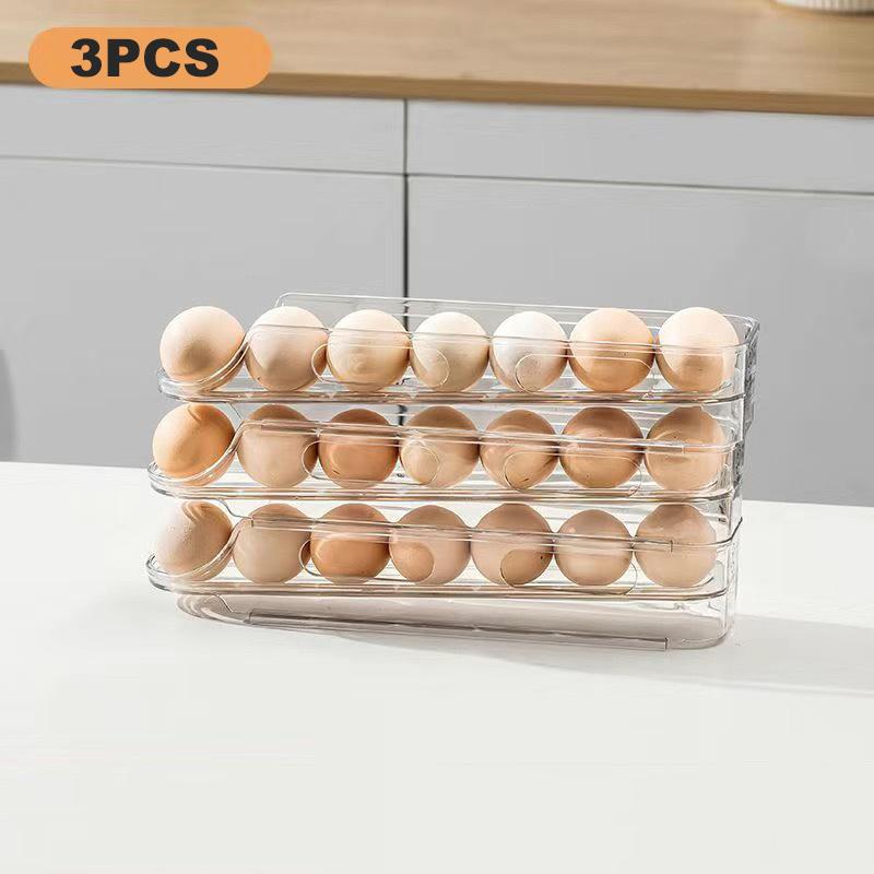 1/2/3-слойный контейнер для хранения яиц, автоматический ролик для яиц, подставка-лестница, диспенсер для яиц в холодильник, органайзер для яиц, кухонный держатель 3PCS