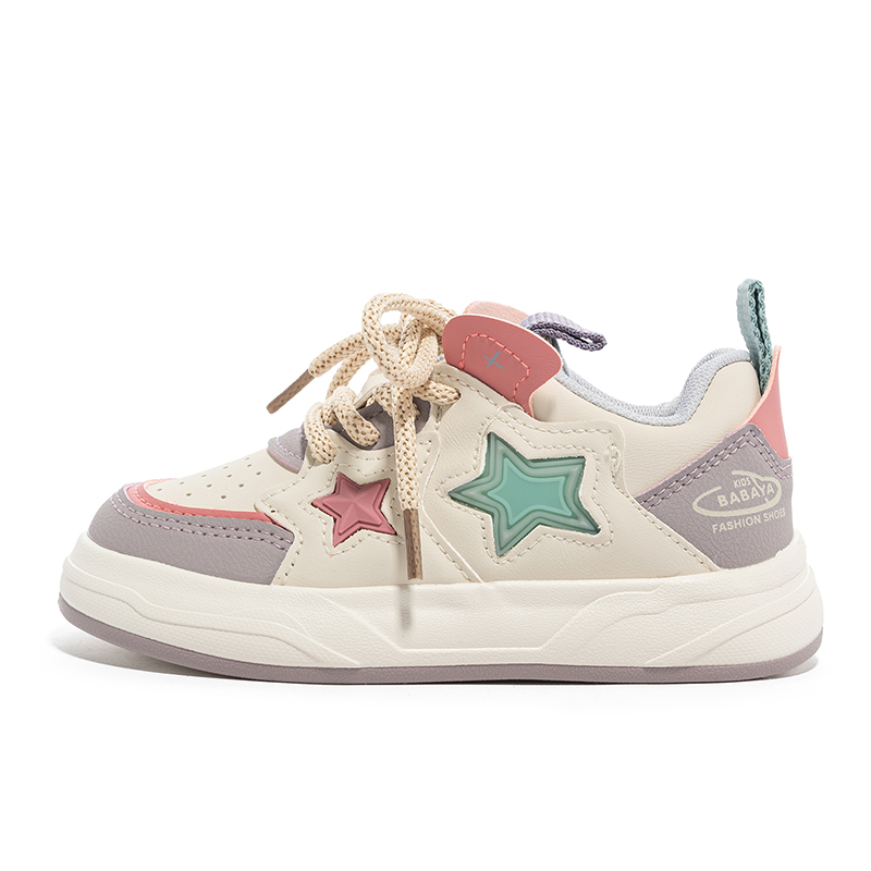 Детские противоскользящие дышащие легкие низкие кроссовки для скейтбординга Babaya бежево-фиолетовые