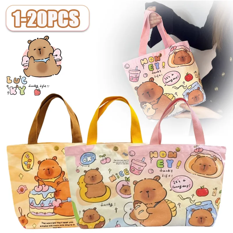 1-20 шт., холщовая сумка с милым рисунком капибары, женская повседневная сумка на плечо, большая вместительная сумка через плечо, сумка с героями мультфильмов, сумка для обеда