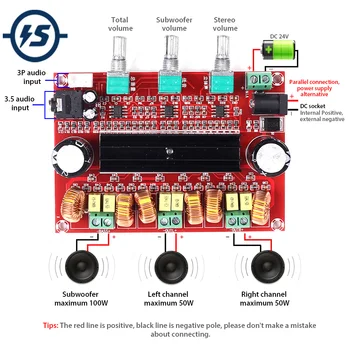 Amplifier Board TPA3116D2 50Wx2+100W 2.1 Channel Digital Subwoofer Power 12~24V