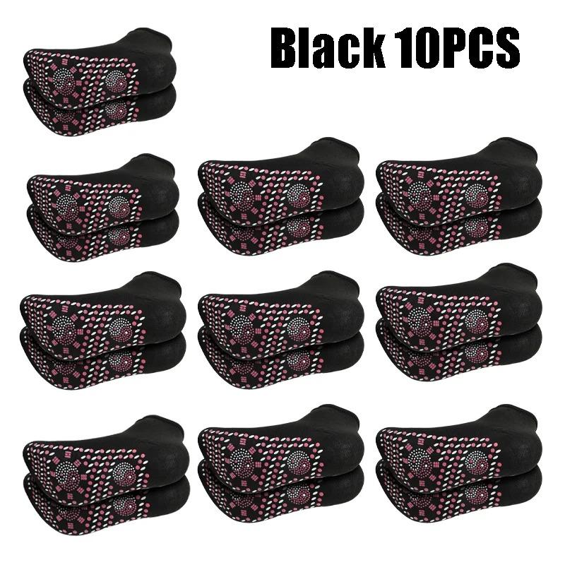 1/3/5/10 пар турмалиновых самонагревающихся носков, зимние теплые термомедицинские носки для похудения, короткие носки для здоровья, носки для магнитной терапии 10PCS чёрный