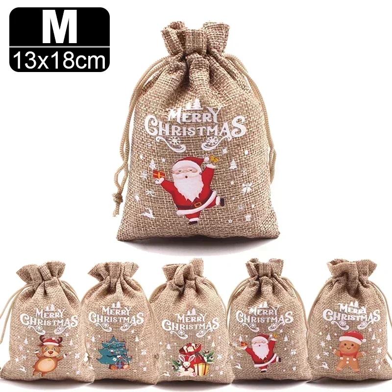 1-30 шт. Рождественские льняные мешочки Мультяшный Санта-Клаус Снеговик Конфеты Подарки Мешочек на шнурке для Рождественской вечеринки Упаковка Мешочки для хранения 1PC
