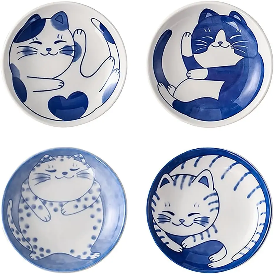 1/4 шт. керамическая тарелка для десерта, милая кошка, искусственная кожа, маленькие миски в японском стиле для боковых блюд, кухонная посуда