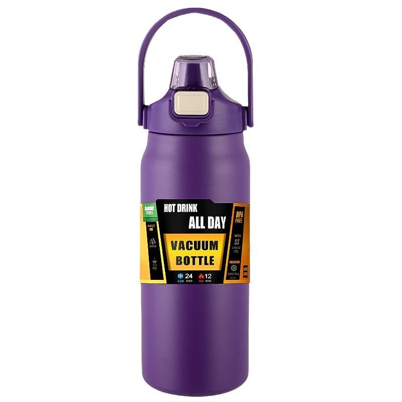 1,5 л Тамблер Большой Вместимости Термобутылка с Соломинкой Термос из Нержавеющей Стали для Воды Холодный и Горячий Термокружка Вакуумные Фляги 1000ML фиолетовый
