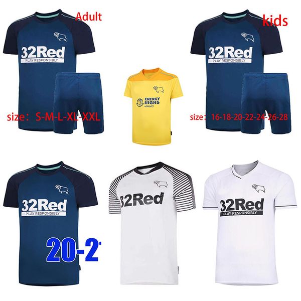 20/21 дерби каунти футбольный клуб трикотажные изделия футбола 2020 главная белый мудрость waghorn martin футбол рубашка hamer rooney форма, Black;yellow
