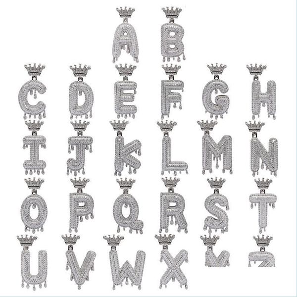 pendant necklaces pendant necklaces hip hop a-z bubble letters drip cz copper rapper cubic zirconia for men women charm jew bdedome dhrsc, Silver