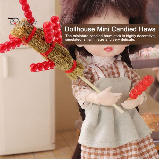 1/6 1/12 кукольный домик, миниатюрные засахаренные боярышники на палочке, 6 засахаренных боярышников и палочек, аксессуары для кукольного дома, крошечные засахаренные боярышники, шампуры, закуски, игрушки для 1 Set