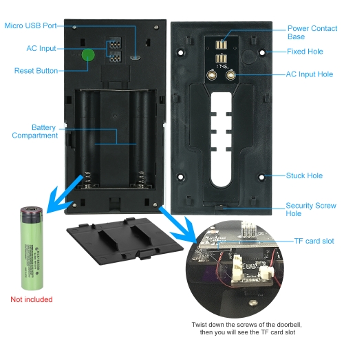 *Consist of 1*WiFi Visual Intercom Door Phone(built-in 8G TF card)+1*Wireless Doorbell Chime support snapshot, PIR motion detection, visual intercom, phone APP remote control for Door Entry Access Control.