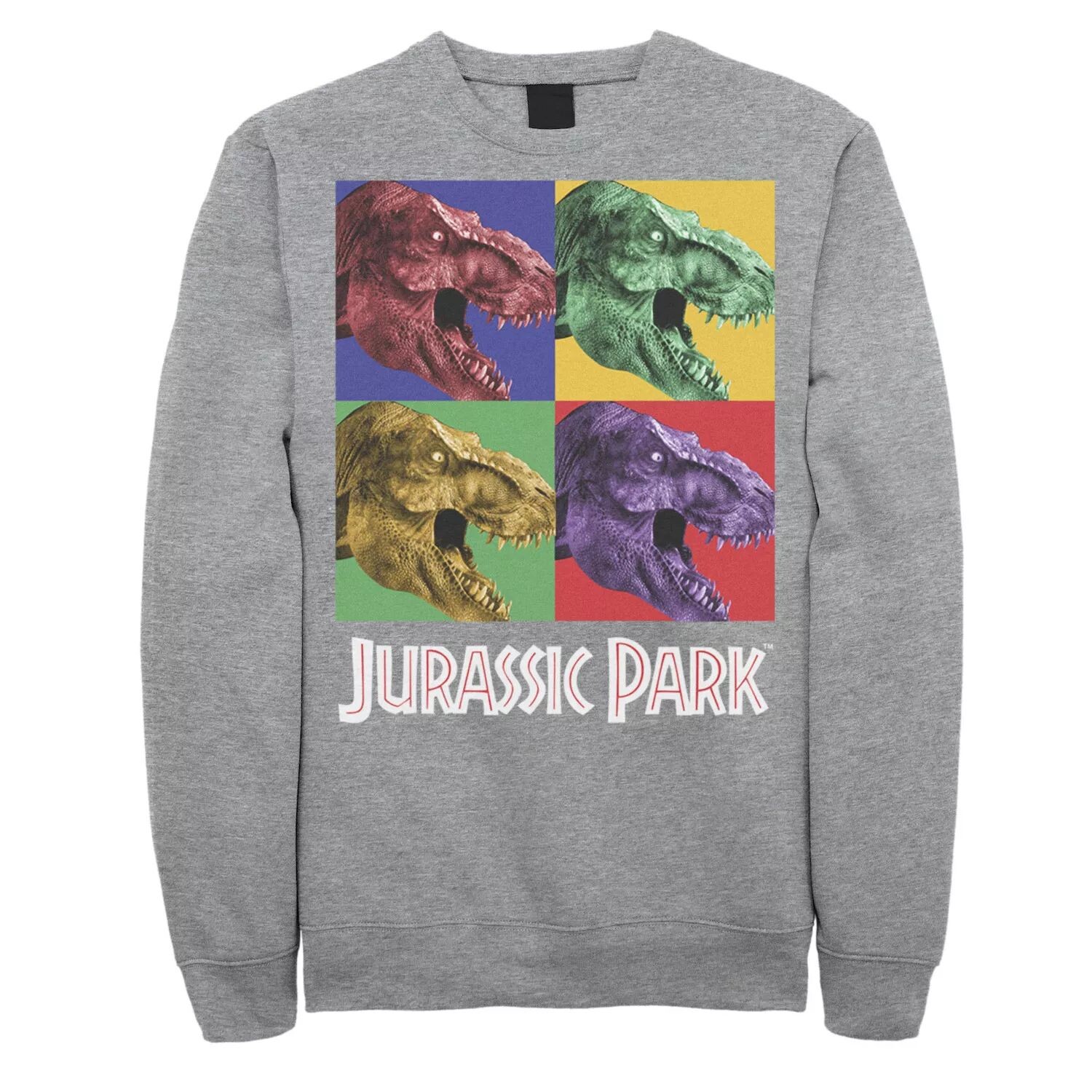 Мужской флисовый пуловер в стиле поп-арт в стиле «Парк Юрского периода» с четырьмя квадратами в стиле «Дино» Licensed Character