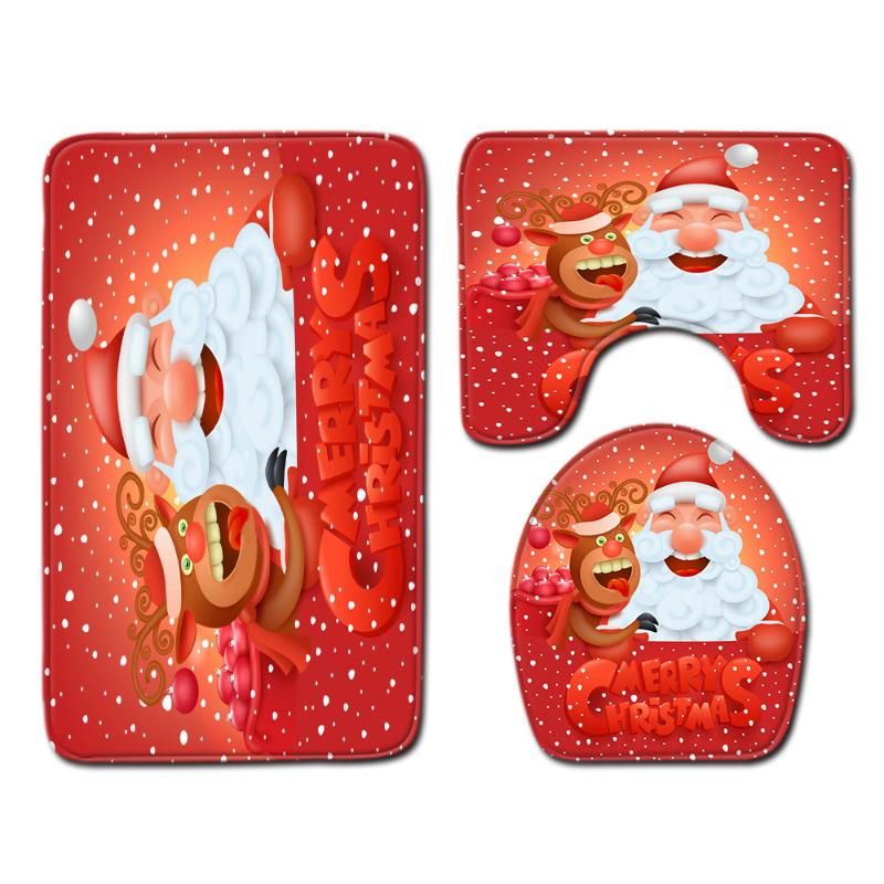 3pcs/set Merry Christmas Non Slip Bathroom Pad Floor Mat Carpet Absorbent Pedestal Rug Lid Toilet Cover Decor Bath Mat Set