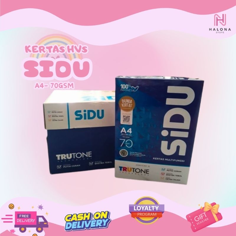 [1 BOX / 5 RIM ] KERTAS HVS A4 SIDU 70 GSM