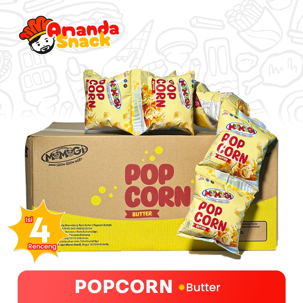 1 DUS Momogi Popcorn - Popcorn Snack Rasa Caramel / Butter Isi 4 Renceng