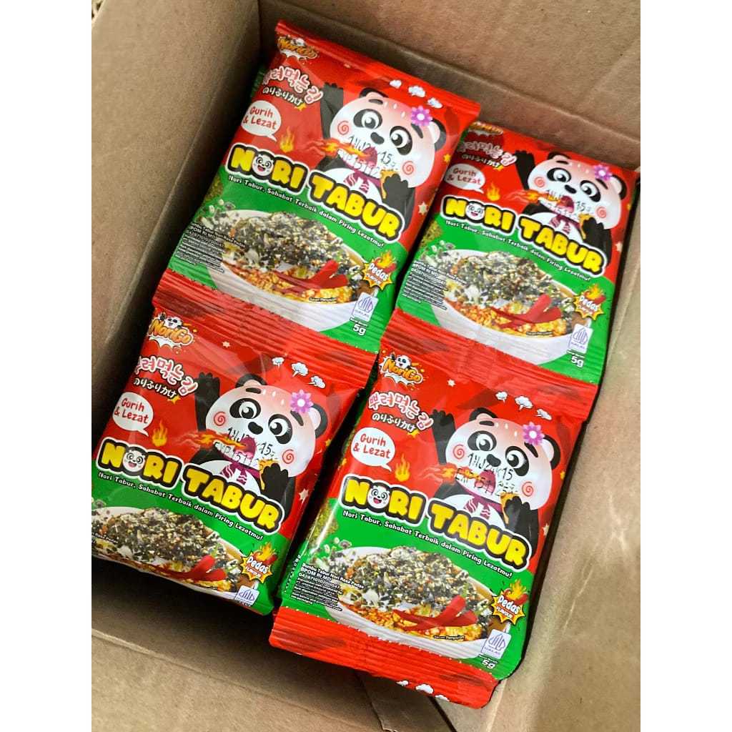 NoriGo menghadirkan Nori Tabur dengan potongan rumput laut panggang, dengan taburan rice noodle, biji wijen, bawang merah dan minyak wijen yang digunakan sebagai taburan toping pelengkap nikmat makanan lezatmu.