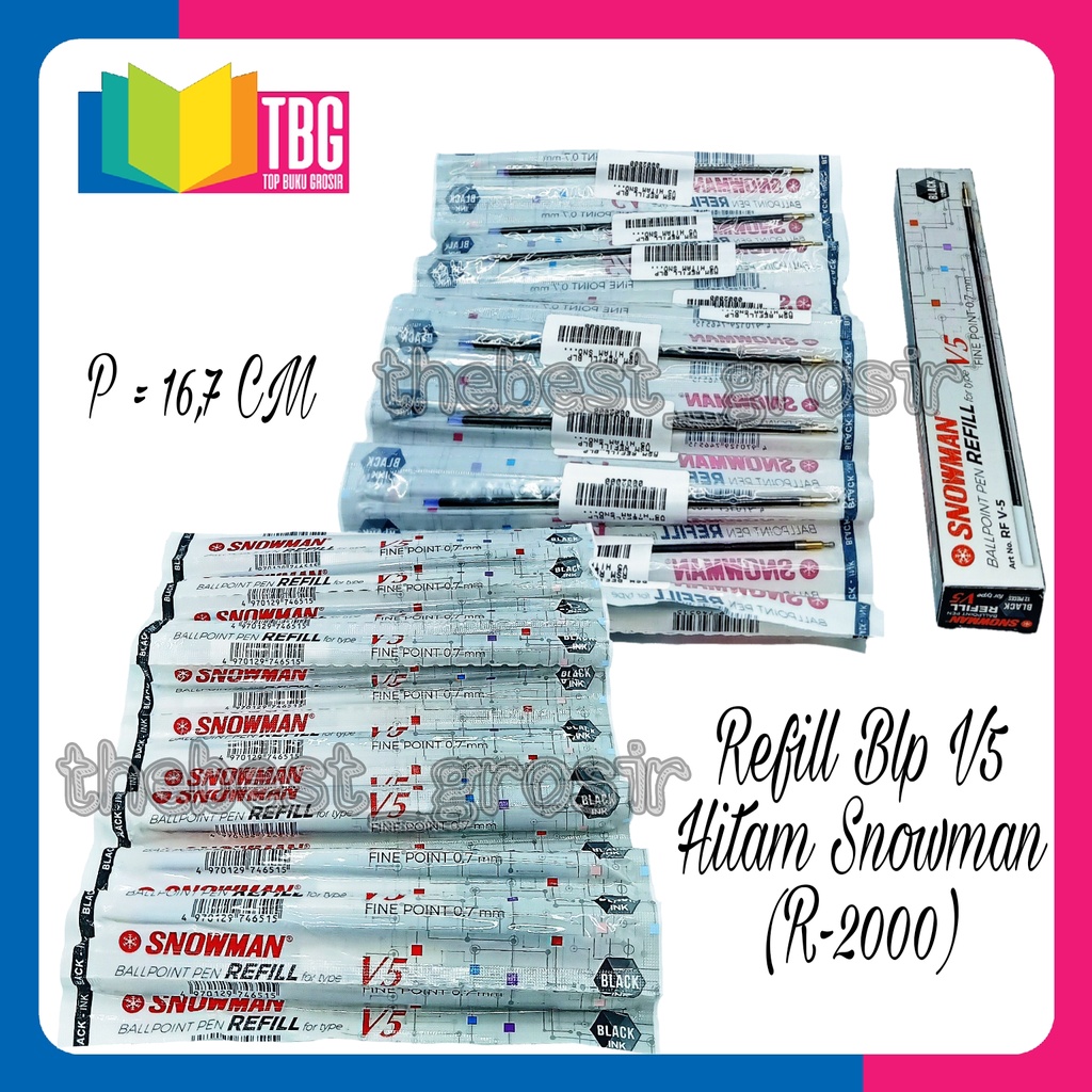1 PCS REFILL BOLPEN V5 HITAM SNOWMAN (2000) / REFILL BALLPOINT SNOWMAN / REFILL PULPEN V5 SNOWMAN (R-2000)