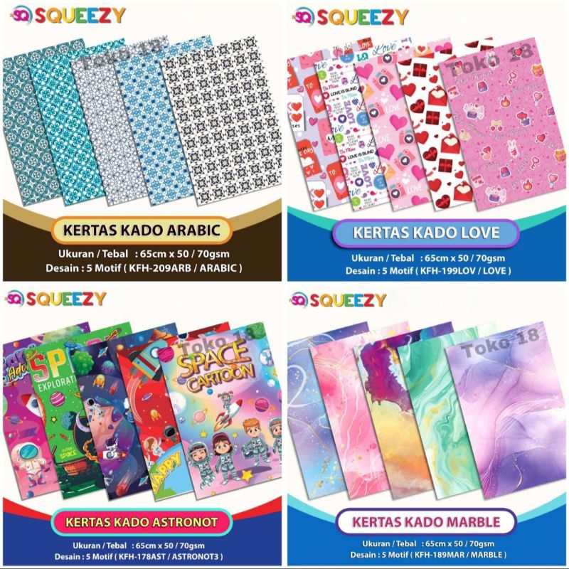 Kertas Kado Merek Squeezy(Motif Lucu Dan Minimalist)