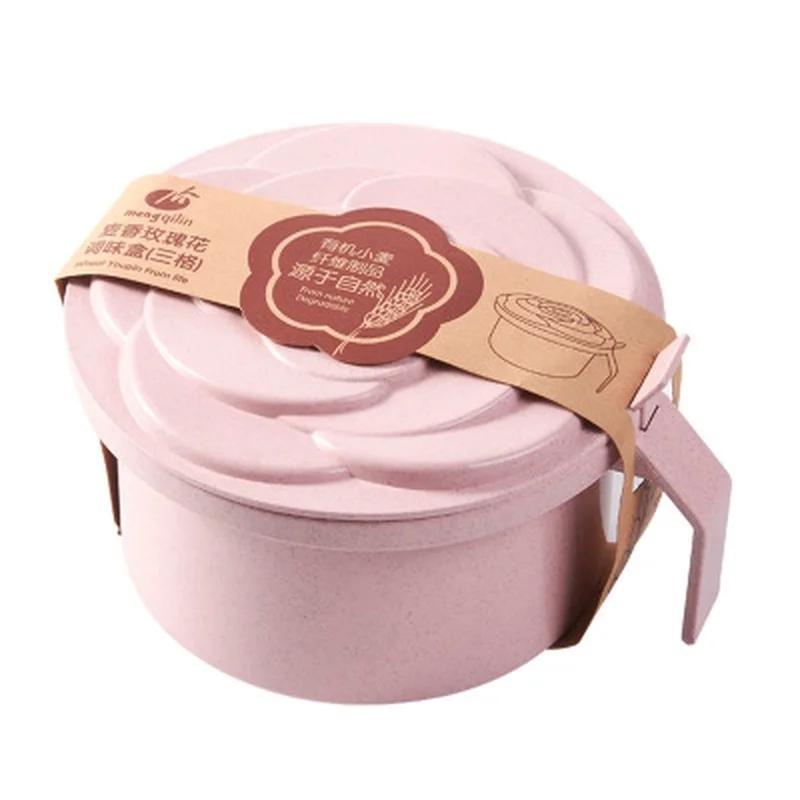 1 Pcs Creative Rose Shape Four Grid Spice Jar Seasoning Box Kitchen Spice Storage Box Salt Pepper Cumin Powder Container розовый