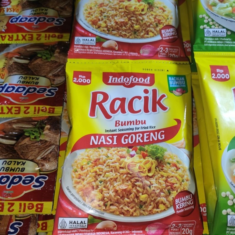 Bumbu racik Indofood adalah bumbu masak instan yang menggunakan rempah-rempah alami yang dikeringkan dan dipasteurisasi untuk menjaga kesegarannya. Bumbu ini hadir dalam berbagai varian untuk masakan seperti nasi goreng, ayam goreng, rendang, dan lainnya, serta dikemas agar mudah digunakan.