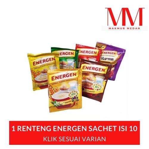 Energen, merupakan sereal sehat dengan kandungan gizi yang bermanfaat untuk tubuh dan cocok untuk dikonsumsi setiap hari. Memiliki 5 varian rasa yaitu vanilla, cokelat, jagung, kacang hijau, dan jahe buat kamu bisa buat menu sarapan yang berbeda setiap harinya