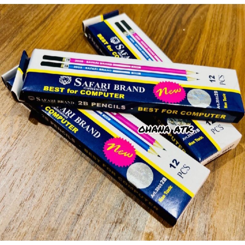 Pensil Pencil SAFARI 2005 2B 1 Box 12 Pcs > Product Size (Ukuran Produk): Panjang 16.5 cm x Diameter 0.8 cm >Box Size (Ukuran Box): Panjang 18 cm x Lebar 4.7 cm x Tinggi 1.6 cm >Tipe: 2B Lead for Computer Scanning >Bentuk: Triangular Grip >For Computer Scanning (Untuk dipindai oleh komputer) >Thick and Stro Strong Lead (Isi pensil yang tebal dan kuat) >For Drawing and Sketching (Untuk menggambar dan membuat sketsa) >Smooth Writing (Lembut untuk ditulis) >Harga 12 pcs