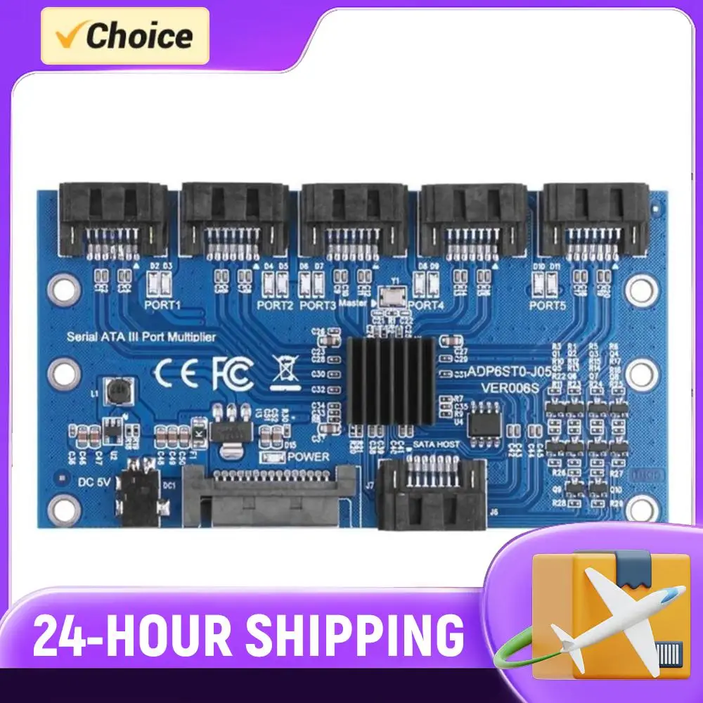 1 to 5 Port SATA Adapter Card SATA 3.0 6Gbps PM Expansion Card Multiplier Riser
