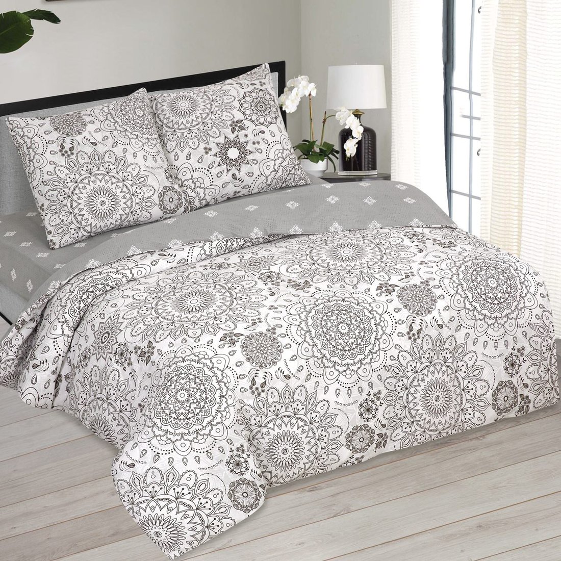 1.5-спальный, поплин, пододеяльник 215x215 см, наволочка 70x70 см, белый/серый