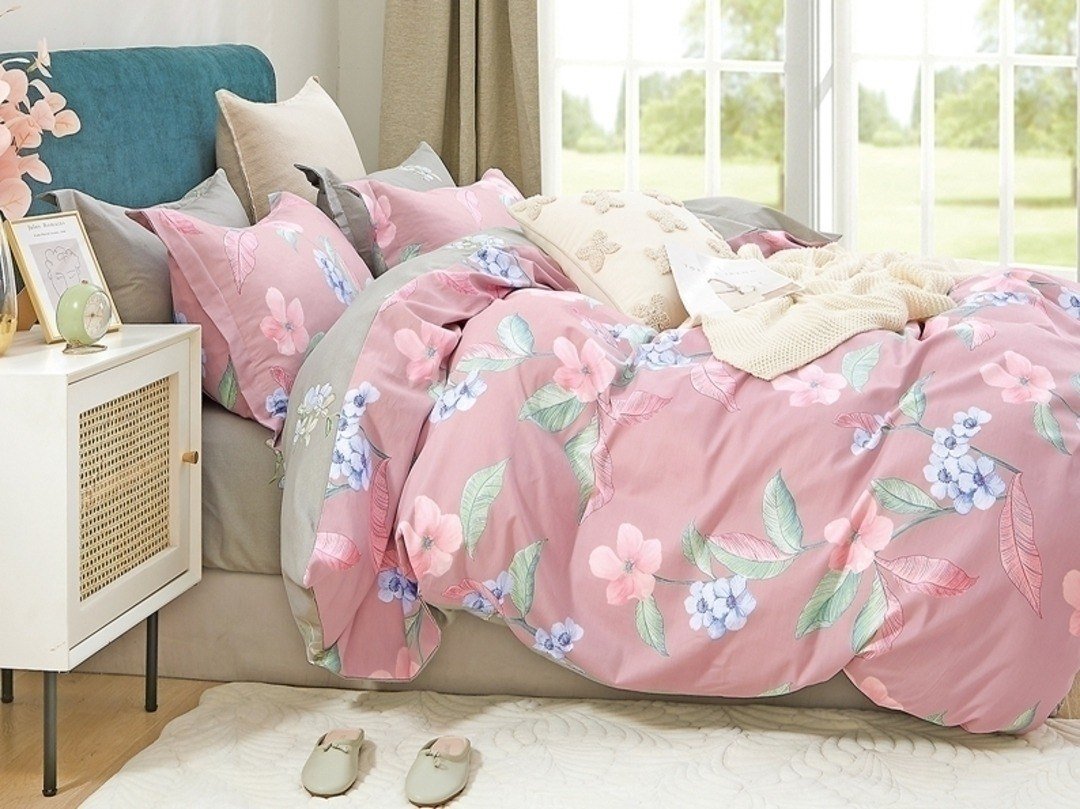 1.5-спальный, сатин, пододеяльник 150x210 см, простыня 150x225 см, наволочка 70x70 см, розовый/серый